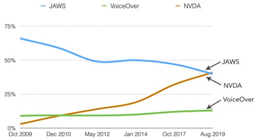 Chart from WebAIM survey #8 https://webaim.org/projects/screenreadersurvey8/